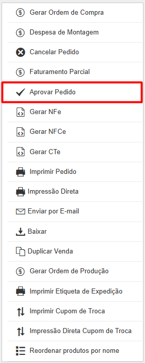 Ao faturar o pedido, você poderá emitir sua NF-e. Acesse o artigo Como emitir NF-e através de Pedidos no SIGE Cloud e saiba mais sobre o assunto.