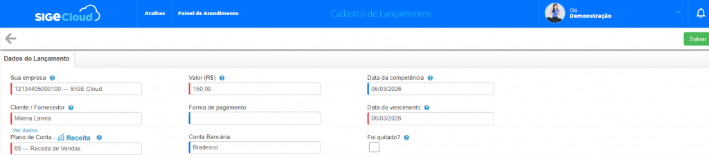 Saiba mais em: Como gerar Lançamentos Financeiros no SIGE Cloud
