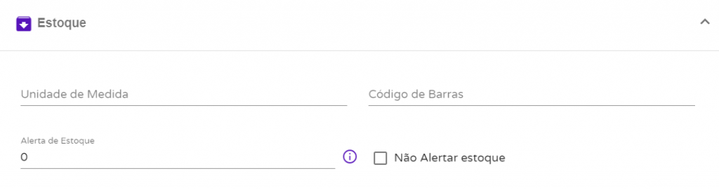 Alerta de Estoque: defina a partir de quantas unidades no estoque você deve receber um aviso para realizar uma nova compra desse produto;