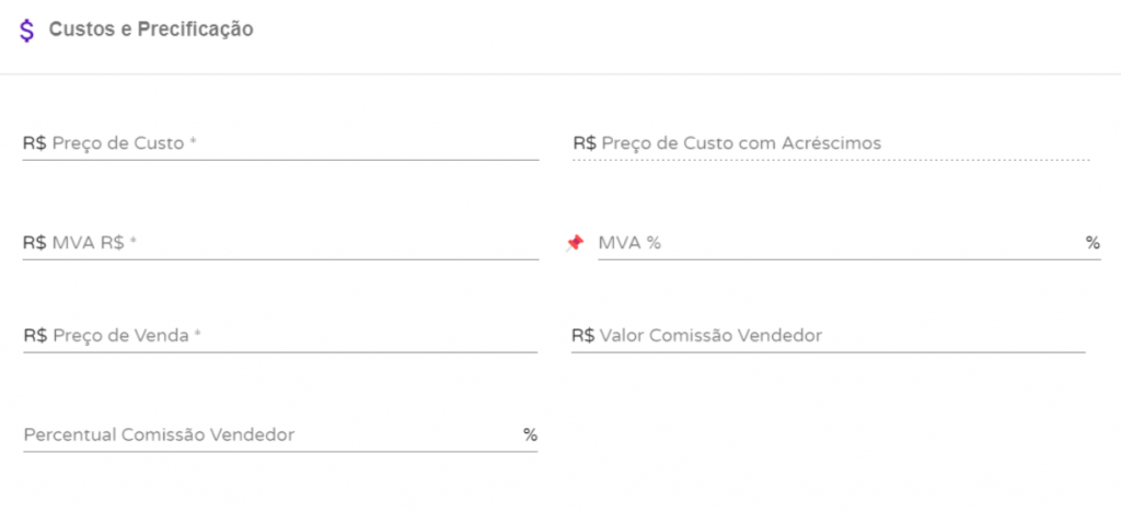 Atenção! Ao informar o MVA em R$, o sistema irá calcular automaticamente o MVA em % (e o Preço de Venda do Produto) e vice-versa. O último campo dentro os três a ser alterado ficará fixado. Ou seja, mesmo quando houver mudanças nos valores de Custo, por exemplo, aquele último campo alterado ficará com o valor definido.