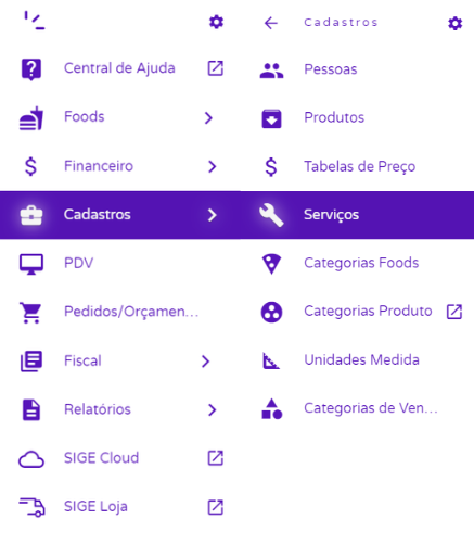 Acesse o menu Cadastros, submenu Serviços e clique em Adicionar.