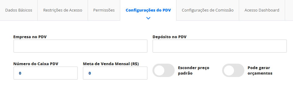 Pode gerar orçamentos: habilite esta opção caso o usuário possa gerar orçamentos direto na tela de PDV.