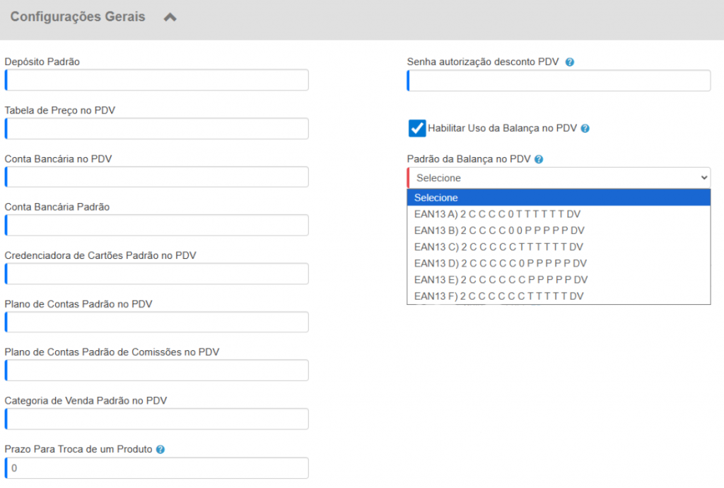 Padrão da Balança no PDV: trata-se da sequência numérica de 13 números que aparece logo abaixo da imagem das barras impressas na maioria dos produtos.
