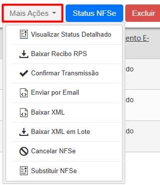 Importante! Todas as opções citadas acima só poderão ser realizadas se alguma NFS-e estiver selecionada.