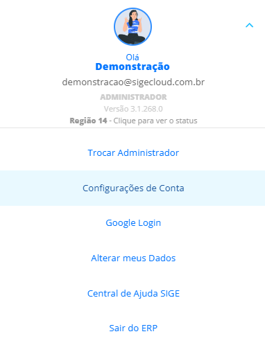 Em seguida, acesse a opção Configurações de Conta.