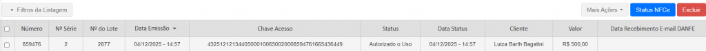 Status: aqui será apresentado o status no qual se encontra a NFC-e apresentada;