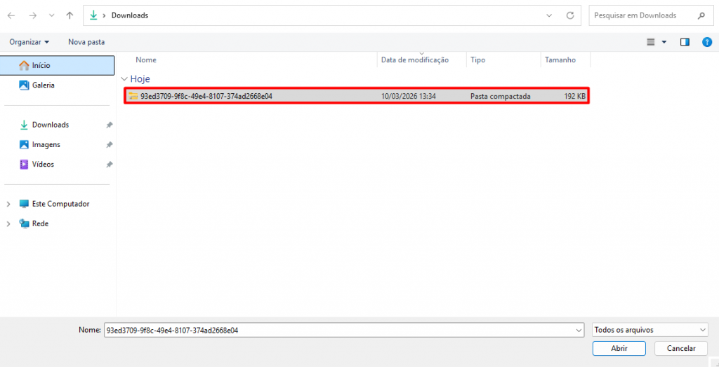 Ao encontrar, clique em “Buscar planilha no meu computador“. Automaticamente, o Explorador de Arquivos será aberto, permitindo localizar a planilha editada. Em seguida, selecione o arquivo e clique em Abrir para enviá-lo ao sistema.