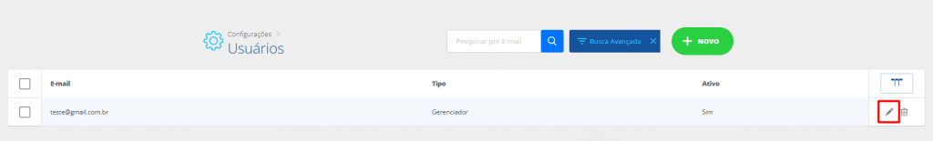 Na listagem de usuários cadastros, encontre o usuário desejado para edição e clique no ícone de lápis para editar.