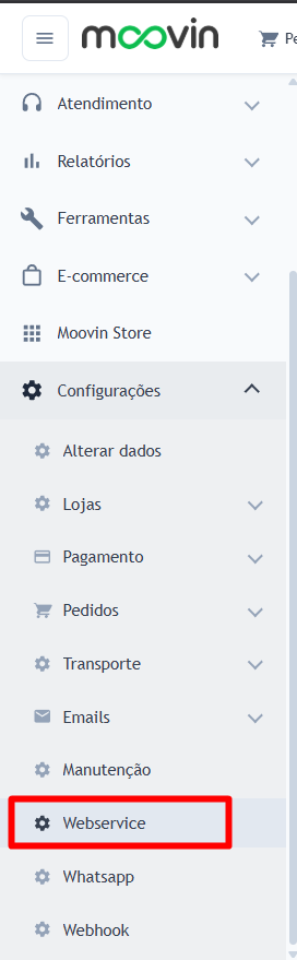 2. No menu lateral Configurações, clique em Webservice.