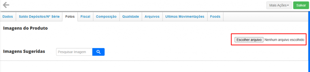 Mas além disso, você também pode inserir manualmente fotos do seu produto que já estão salvas em seu computador. Basta clicar em Escolher ficheiro e adicionar no cadastro.