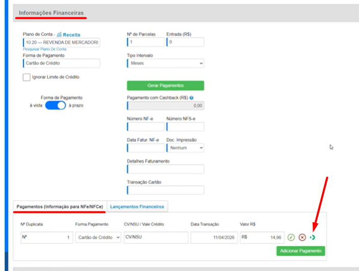 No PDV, informe seus produtos e cliente e avance até a etapa de forma de pagamento.