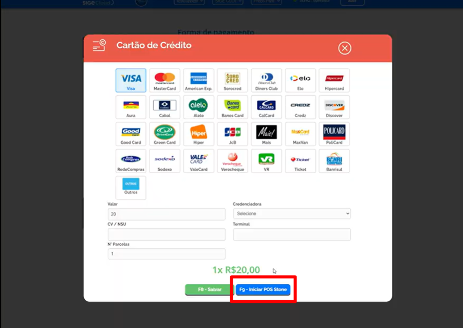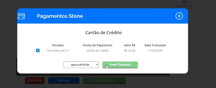 Em seguida, clique no botão Iniciar POS Stone ou utilize o atalho F9.