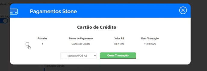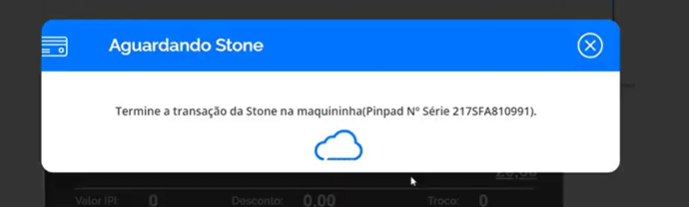 Um popup aparecerá orientando a finalizar a operação diretamente na maquininha Stone.