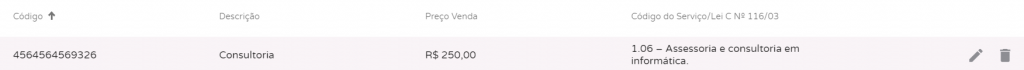 Código: o sistema irá exibir o código do serviço, conforme seu cadastro;