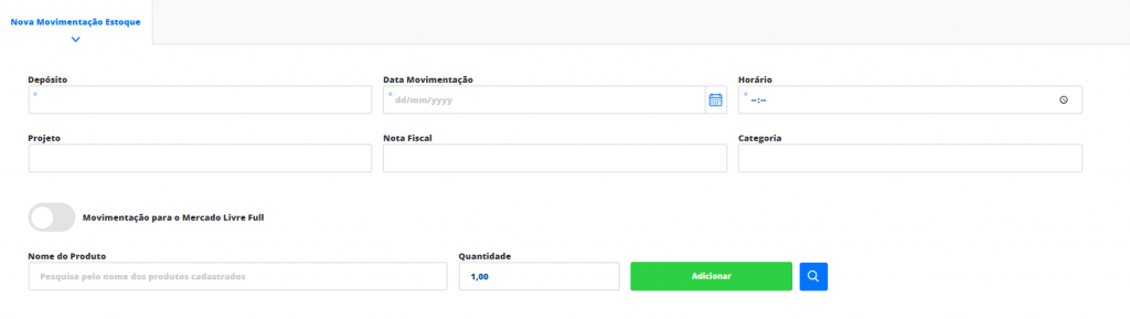 Ao acessar, o sistema exibirá novos campos para preenchimento e registro da movimentação.
