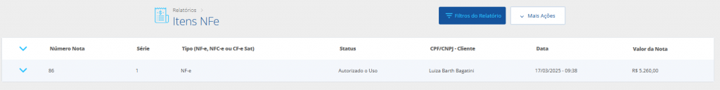 Status: o relatório apresenta o status que se encontra a nota fiscal emitida;