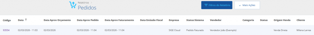 Como gerar o Relatório de Pedidos no SIGE Cloud