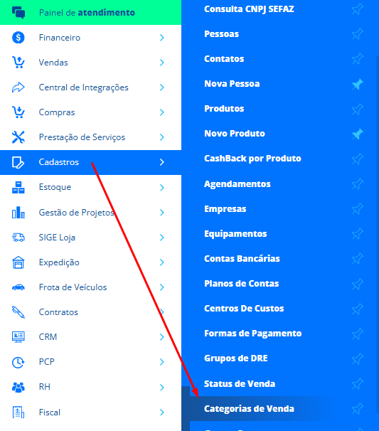 Ao realizar uma venda e informar uma categoria de venda, você deve se certificar de que a categoria esta cadastrada para movimentar estoque. Para conferir se sua categoria movimenta estoque, acesse o menu lateral Cadastros, submenu Categorias de Venda.