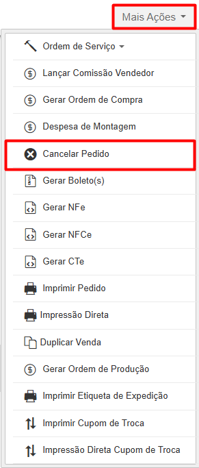 Agora, clique na opção Cancelar Pedido.