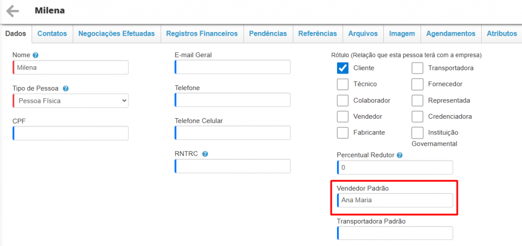 Dessa forma, todos os clientes a qual forem vinculados a um vendedor, juntamente com a configuração habilitada, serão apresentados somente para o seu vendedor padrão.